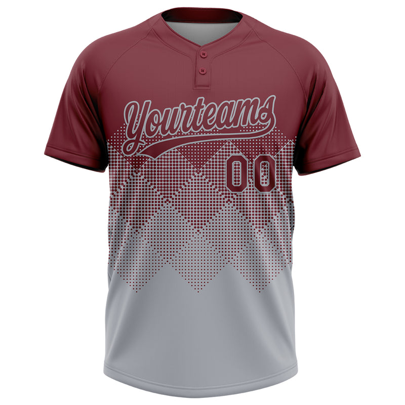 Custom Burgundy Gray 3D Gradient Square Shape Two-Button Unisex Softball Jersey