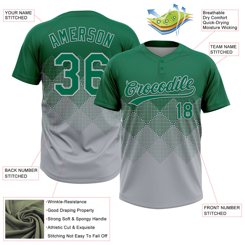 Custom Kelly Green Gray 3D Gradient Square Shape Two-Button Unisex Softball Jersey