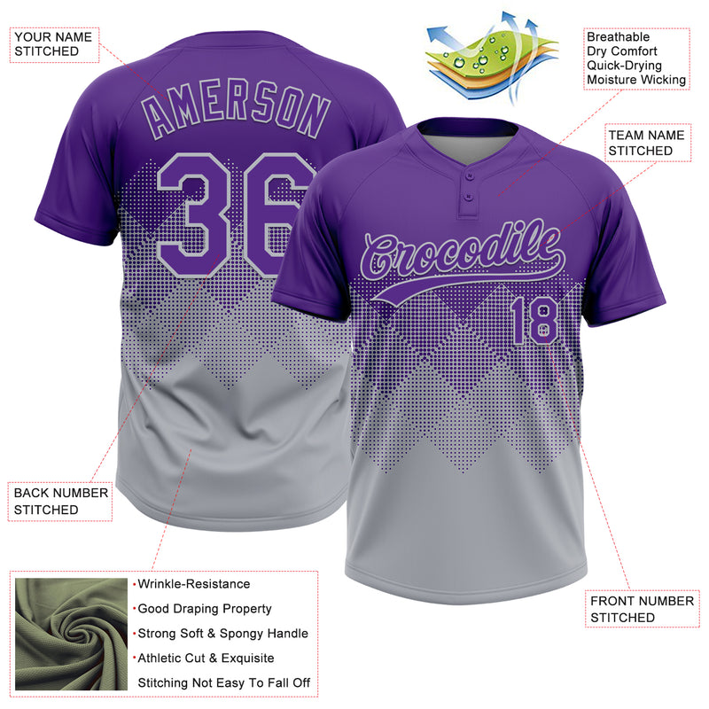 Custom Purple Gray 3D Gradient Square Shape Two-Button Unisex Softball Jersey