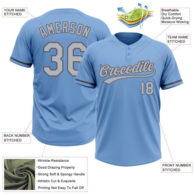 Custom Light Blue Gray-Steel Gray Two-Button Unisex Softball Jersey