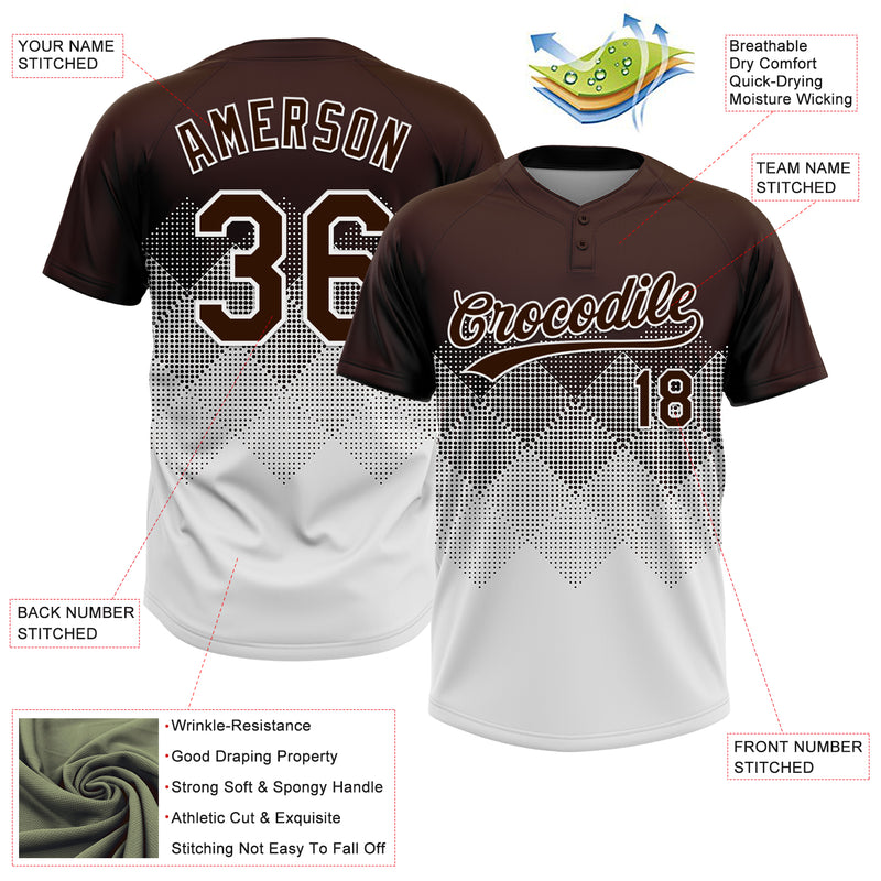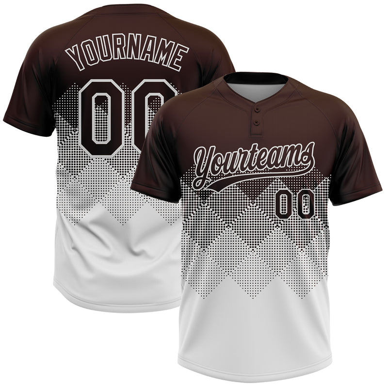 Custom Brown White 3D Gradient Square Shape Two-Button Unisex Softball Jersey