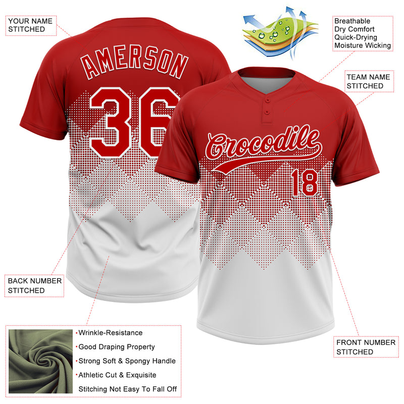 Custom Red White 3D Gradient Square Shape Two-Button Unisex Softball Jersey