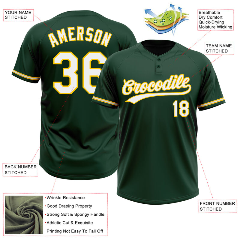 Custom Green White-Yellow Two-Button Unisex Softball Jersey
