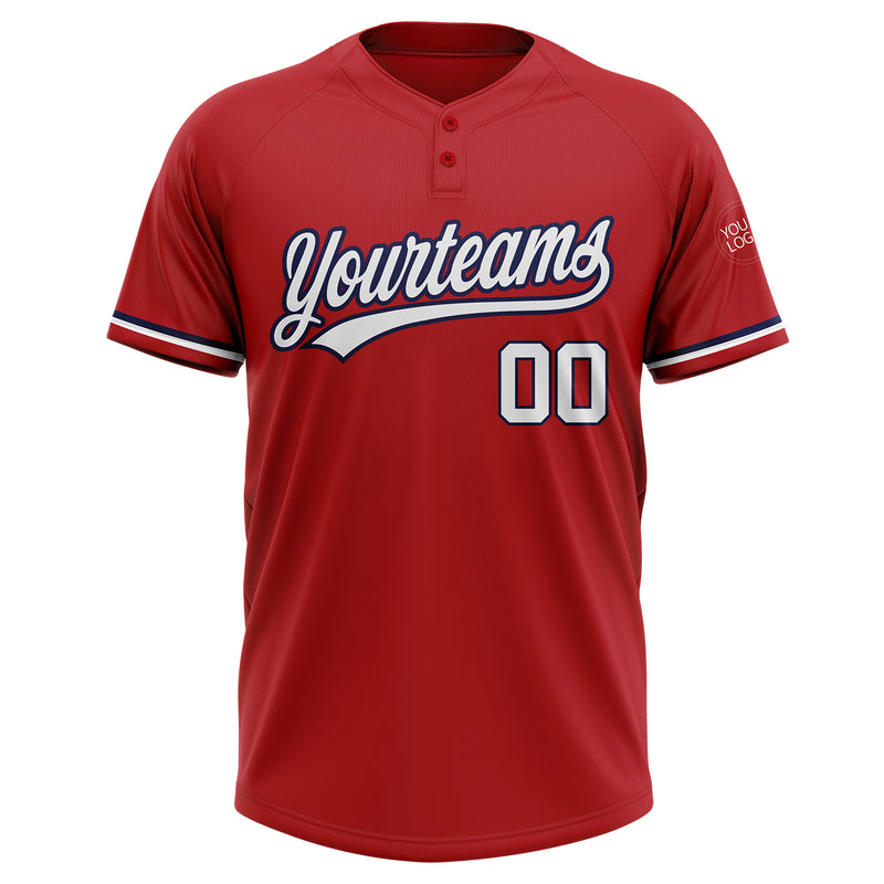 Custom Red White-Navy Two-Button Unisex Softball Jersey