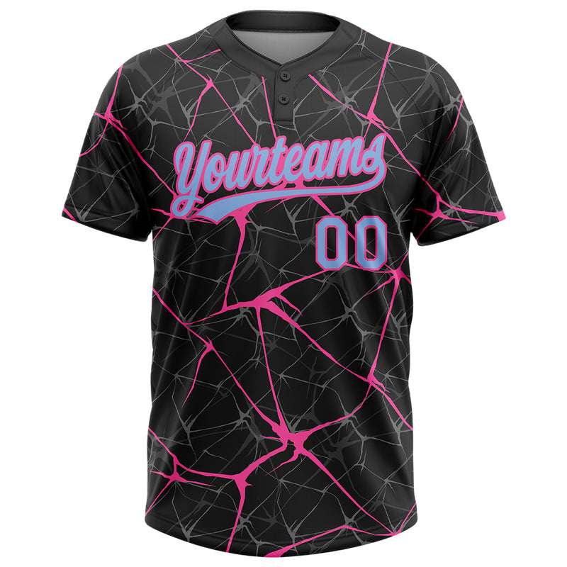 Custom Black Light Blue-Pink 3D Pattern Abstract Network Two-Button Unisex Softball Jersey