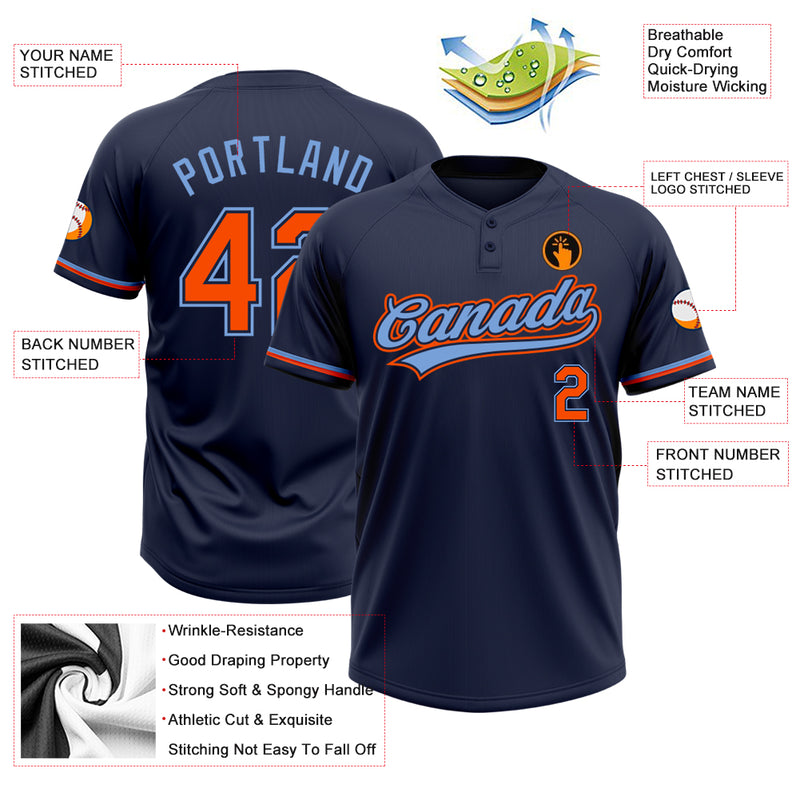 Custom Navy Orange-Powder Blue Two-Button Unisex Softball Jersey