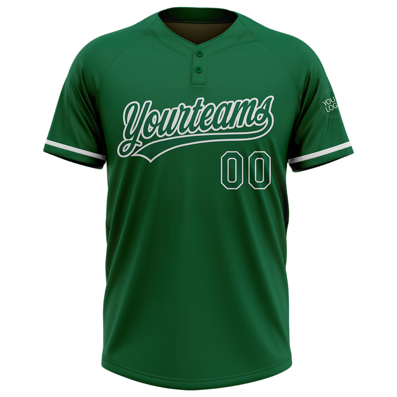 Custom Kelly Green White Two-Button Unisex Softball Jersey