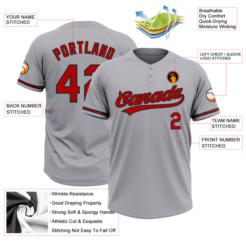 Custom Gray Red-Black Two-Button Unisex Softball Jersey