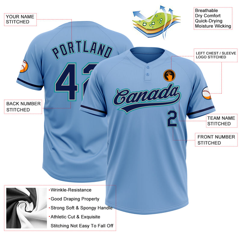 Custom Light Blue Navy Gray-Teal Two-Button Unisex Softball Jersey