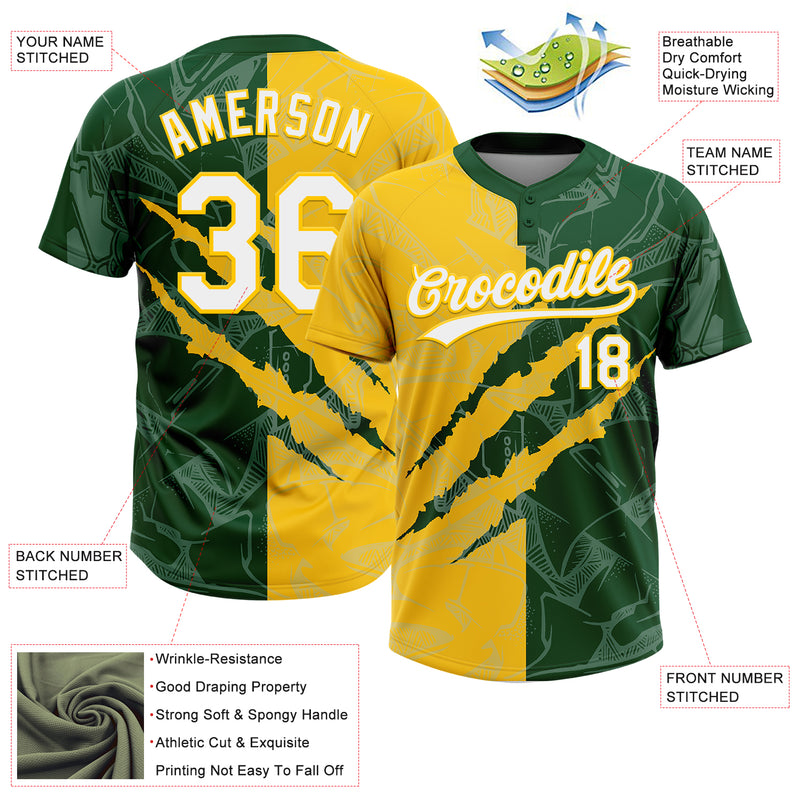 Custom Graffiti Pattern White Green-Yellow 3D Scratch Two-Button Unisex Softball Jersey
