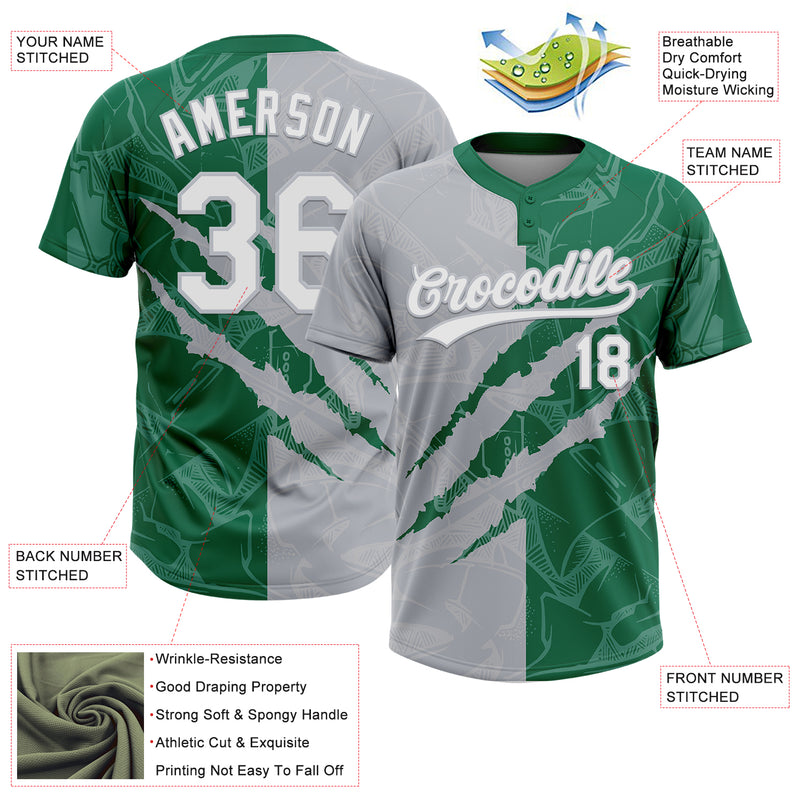 Custom Graffiti Pattern White Kelly Green-Gray 3D Scratch Two-Button Unisex Softball Jersey
