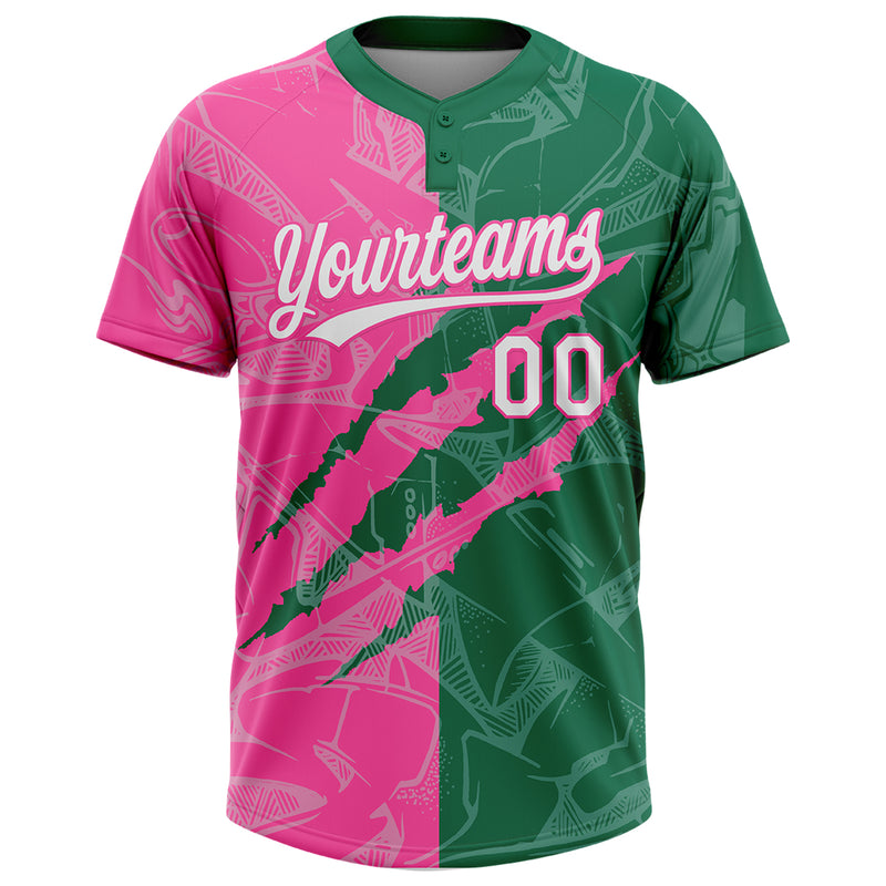 Custom Graffiti Pattern White Kelly Green-Pink 3D Scratch Two-Button Unisex Softball Jersey