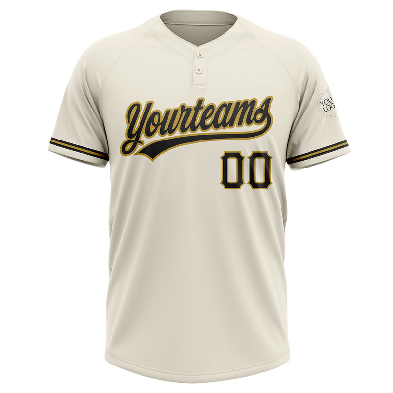 Custom Cream Black-Old Gold Two-Button Unisex Softball Jersey