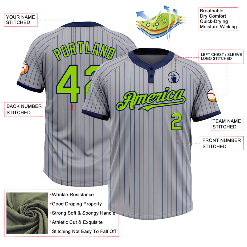 Custom Gray Navy Pinstripe Neon Green Two-Button Unisex Softball Jersey