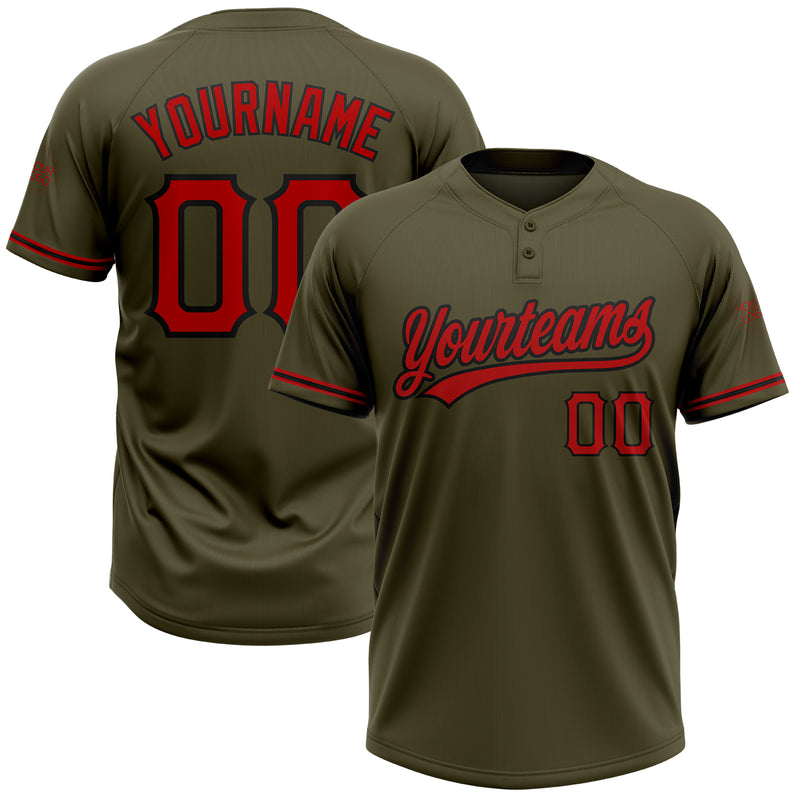 Custom Olive Red-Black Salute To Service Two-Button Unisex Softball Jersey
