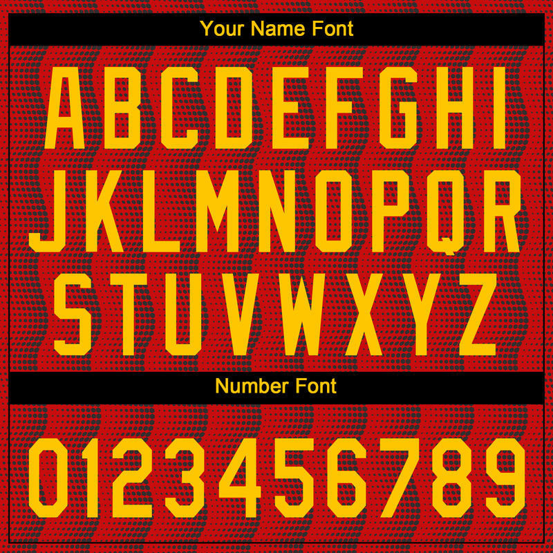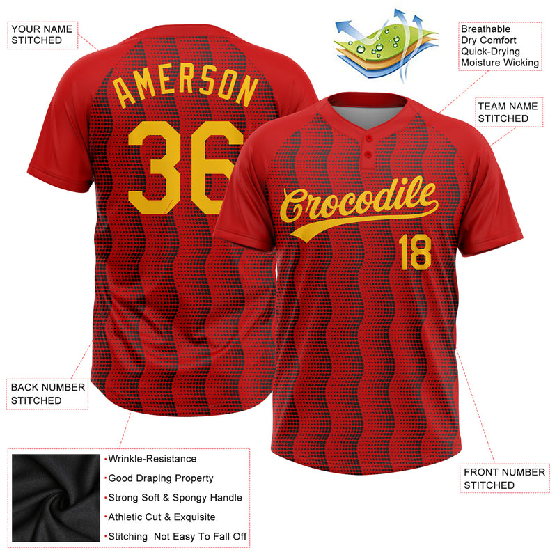 Custom Red Gold-Black 3D Pattern Two-Button Unisex Softball Jersey