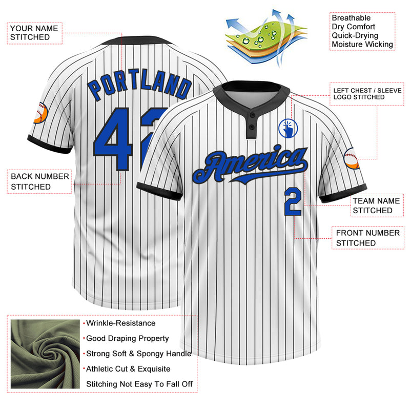 Custom White Black Pinstripe Thunder Blue Two-Button Unisex Softball Jersey