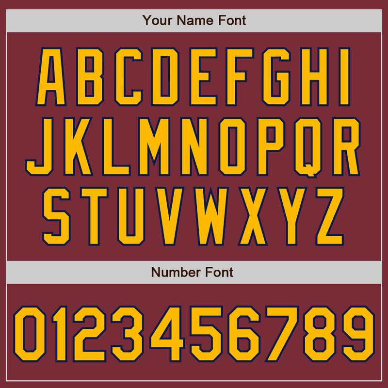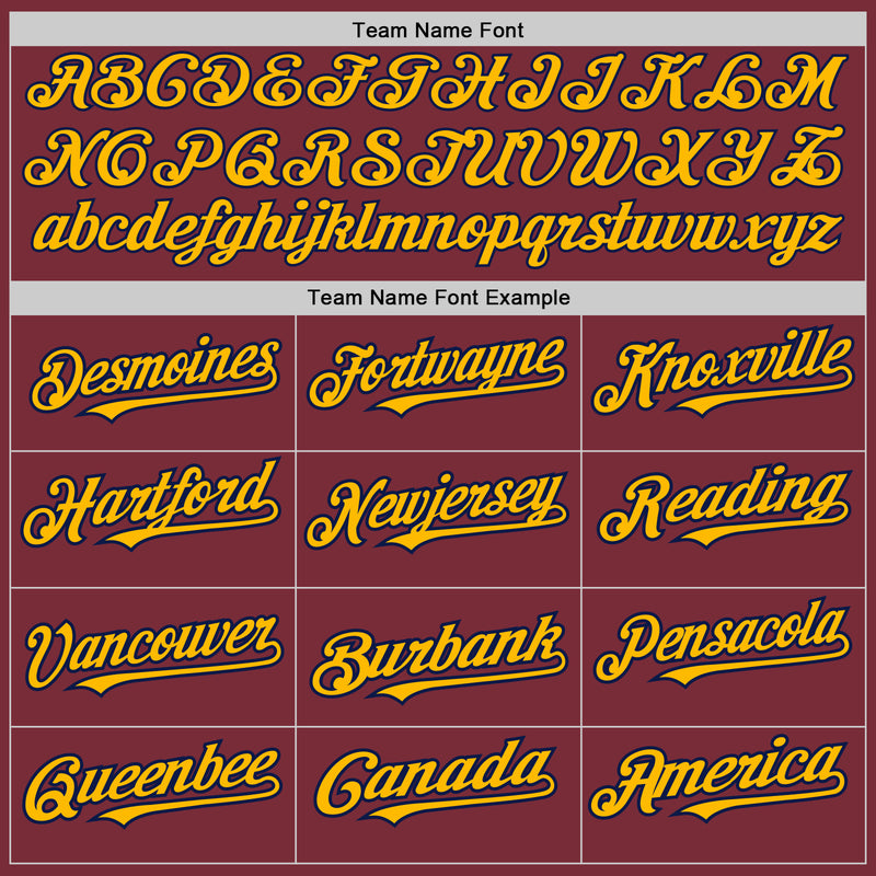 Custom Burgundy Navy Pinstripe Gold Two-Button Unisex Softball Jersey