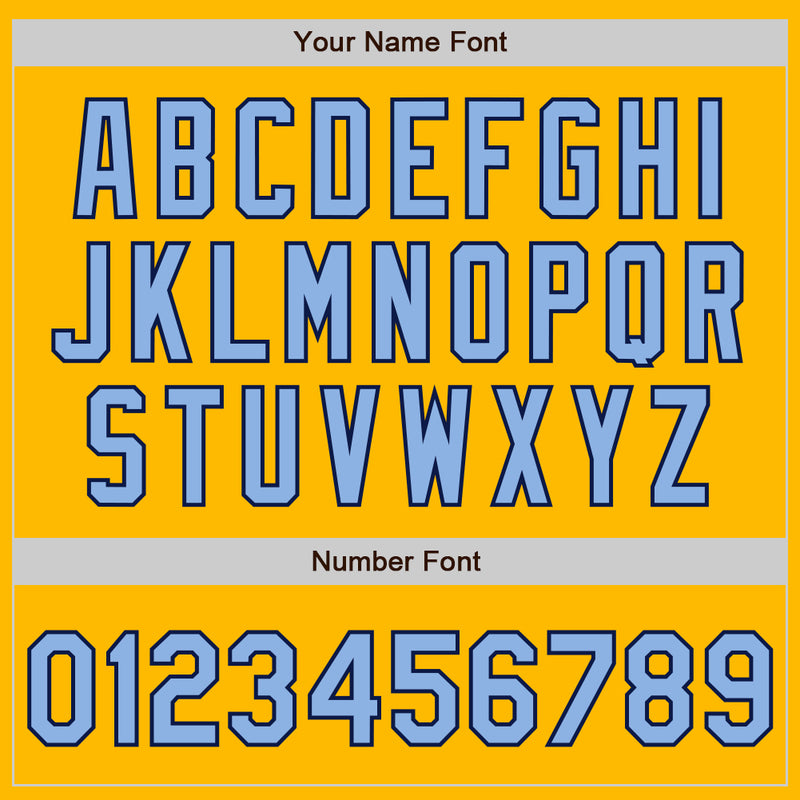 Custom Gold Navy Pinstripe Light Blue Two-Button Unisex Softball Jersey