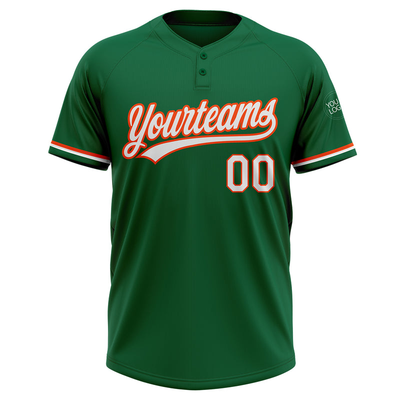 Custom Kelly Green White-Orange Two-Button Unisex Softball Jersey