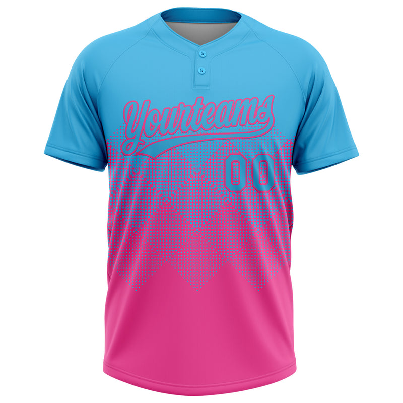Custom Sky Blue Pink 3D Gradient Square Shape Two-Button Unisex Softball Jersey