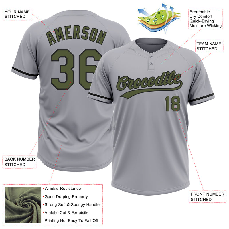 Custom Gray Olive-Black Two-Button Unisex Softball Jersey