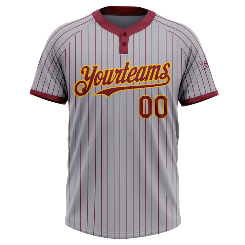 Custom Gray Crimson Pinstripe Gold Two-Button Unisex Softball Jersey