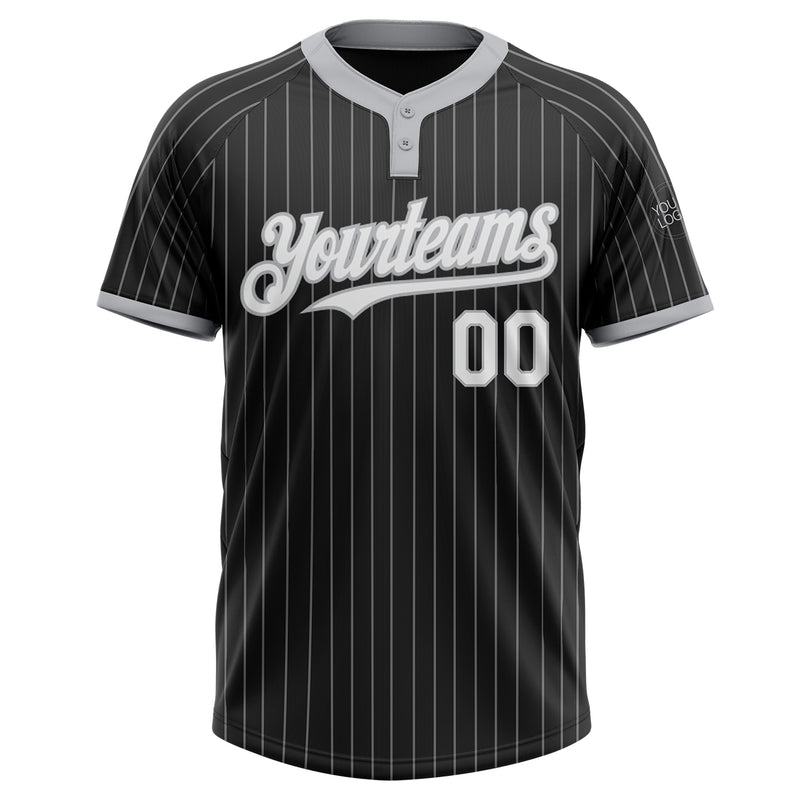 Custom Black Gray Pinstripe White Two-Button Unisex Softball Jersey