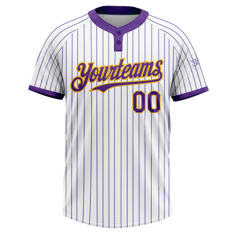 Custom White Purple Pinstripe Gold Two-Button Unisex Softball Jersey