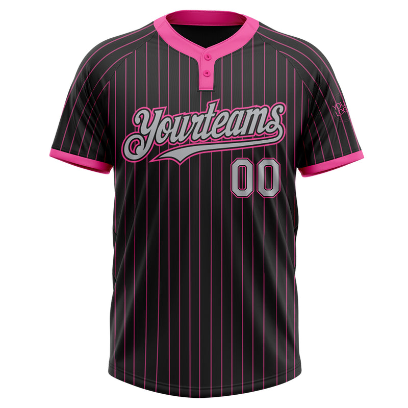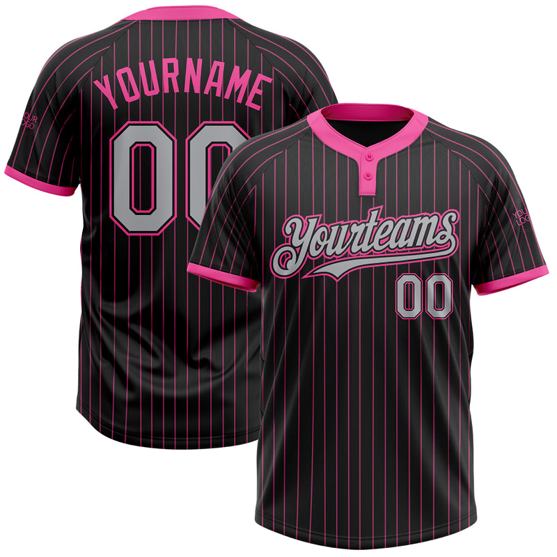 Custom Black Pink Pinstripe Gray Two-Button Unisex Softball Jersey