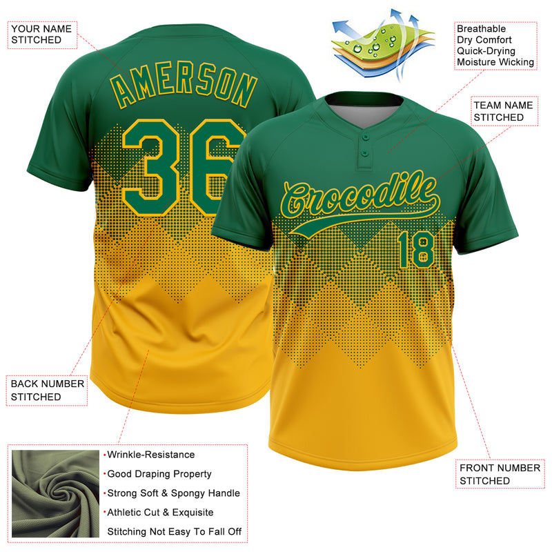 Custom Kelly Green Gold 3D Gradient Square Shape Two-Button Unisex Softball Jersey