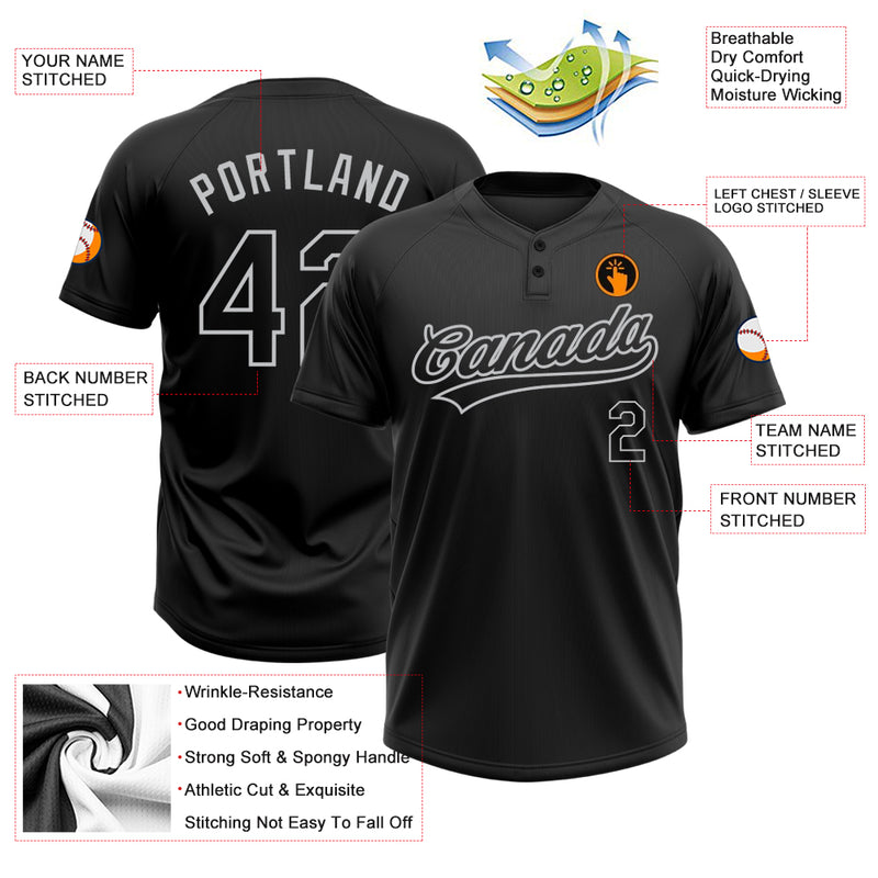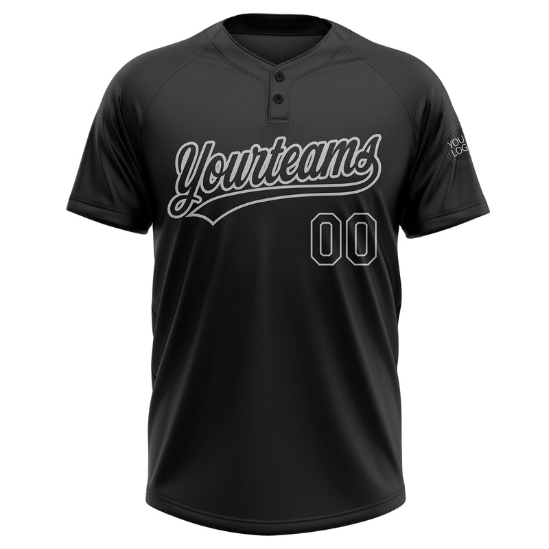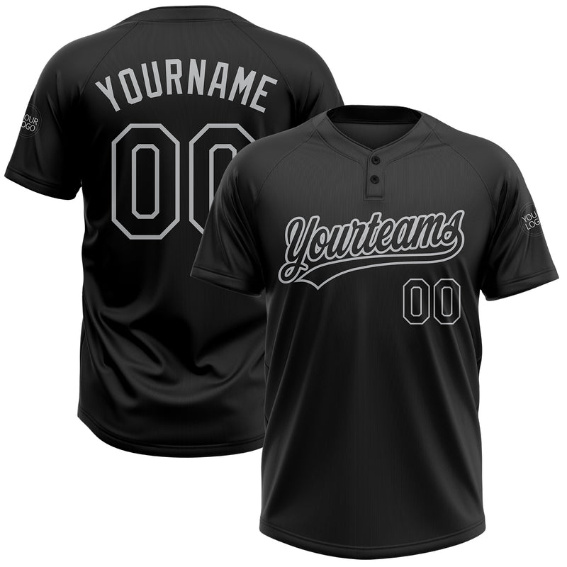 Custom Black Black-Gray Two-Button Unisex Softball Jersey