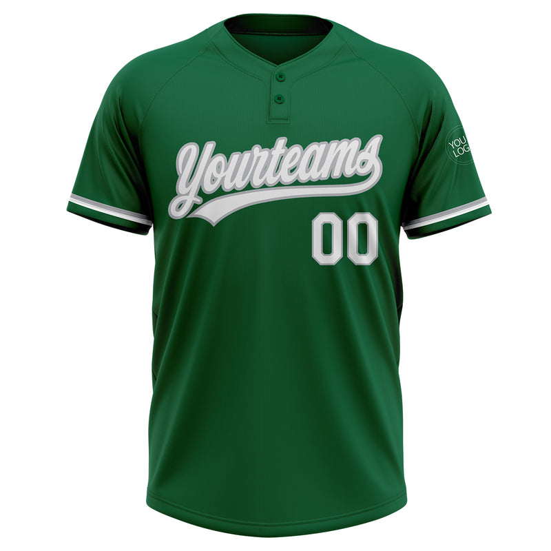 Custom Kelly Green White-Gray Two-Button Unisex Softball Jersey