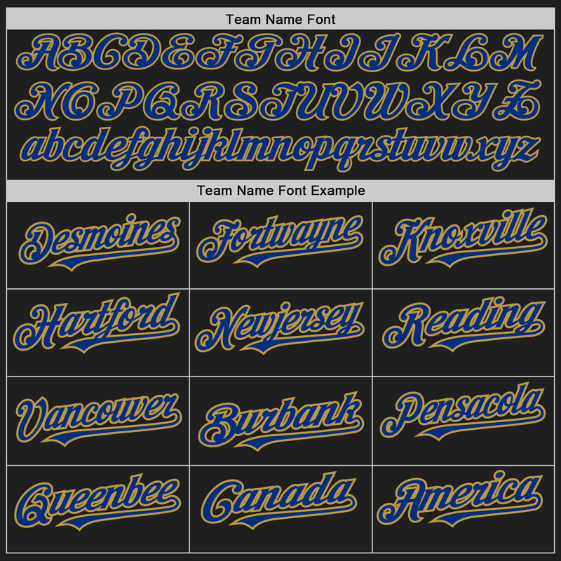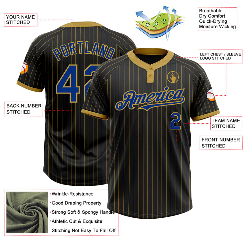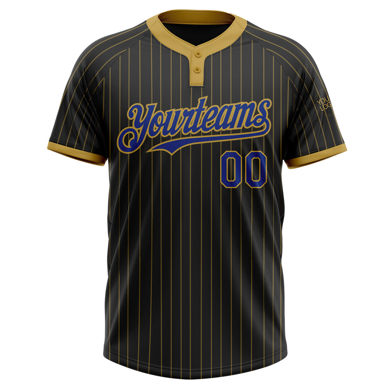 Custom Black Old Gold Pinstripe Royal Two-Button Unisex Softball Jersey