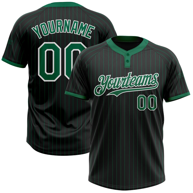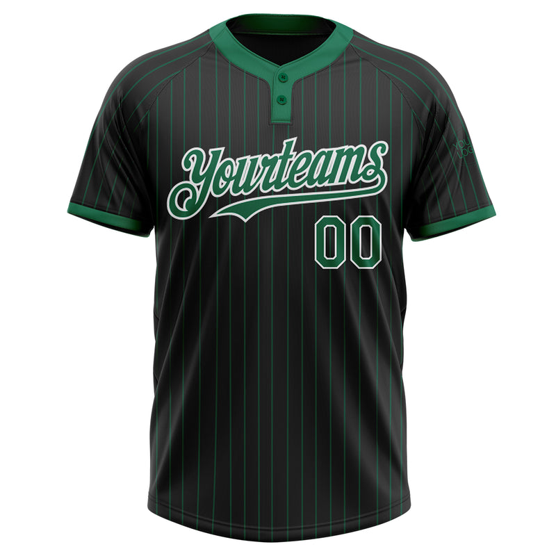 Custom Black Kelly Green Pinstripe White Two-Button Unisex Softball Jersey