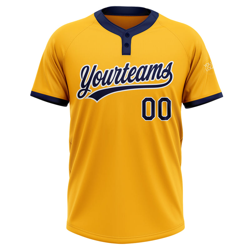 Custom Gold Navy-White Two-Button Unisex Softball Jersey