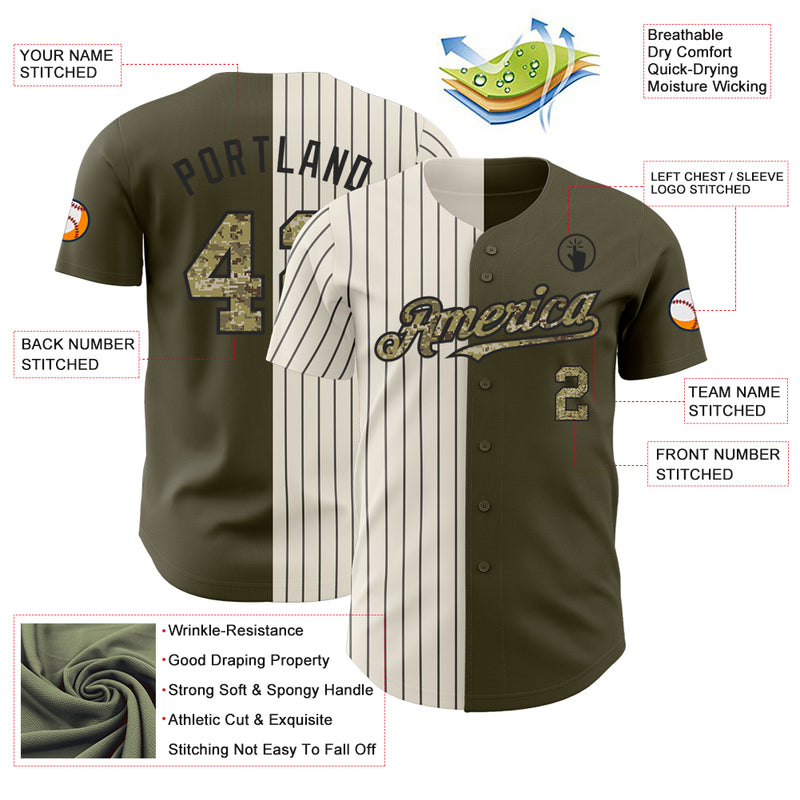 Custom Olive Camo Cream-Black Pinstripe Authentic Split Fashion Salute To Service Baseball Jersey