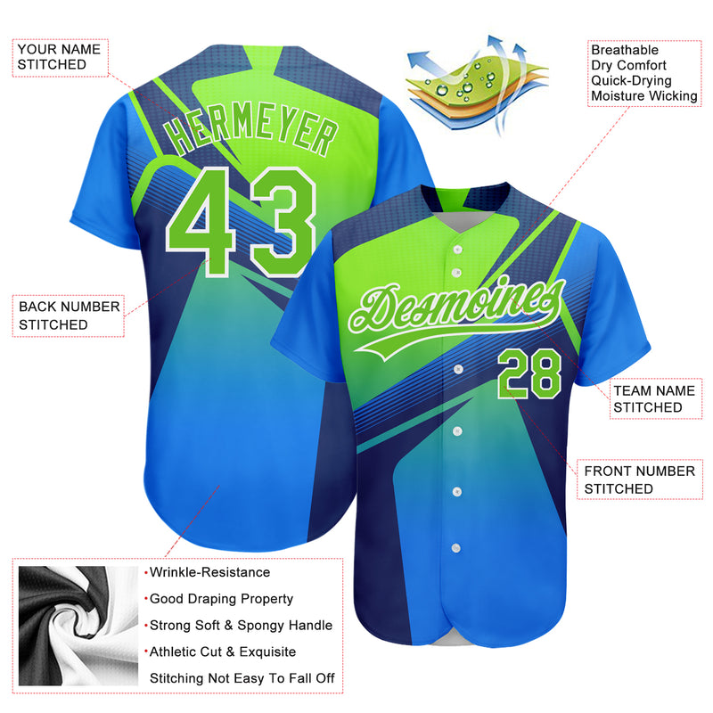 Custom Royal Neon Green-White 3D Pattern Design Abstract Sport Authentic Baseball Jersey