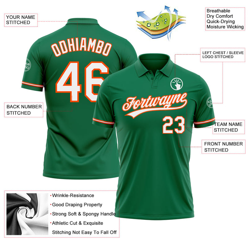 Custom Kelly Green White-Orange Performance Vapor Golf Polo Shirt