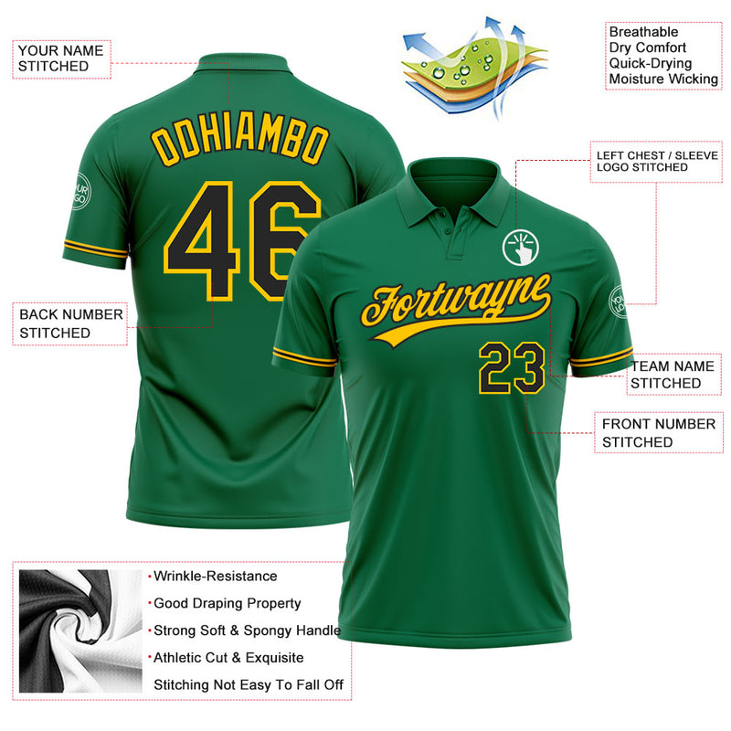 Custom Kelly Green Black-Yellow Performance Vapor Golf Polo Shirt