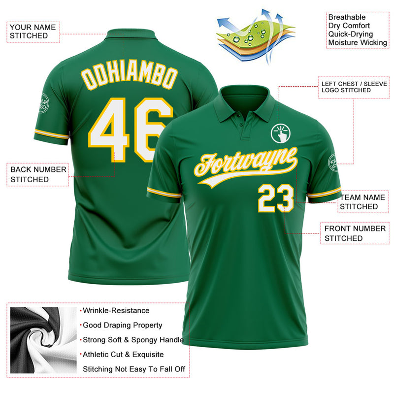 Custom Kelly Green White-Yellow Performance Vapor Golf Polo Shirt
