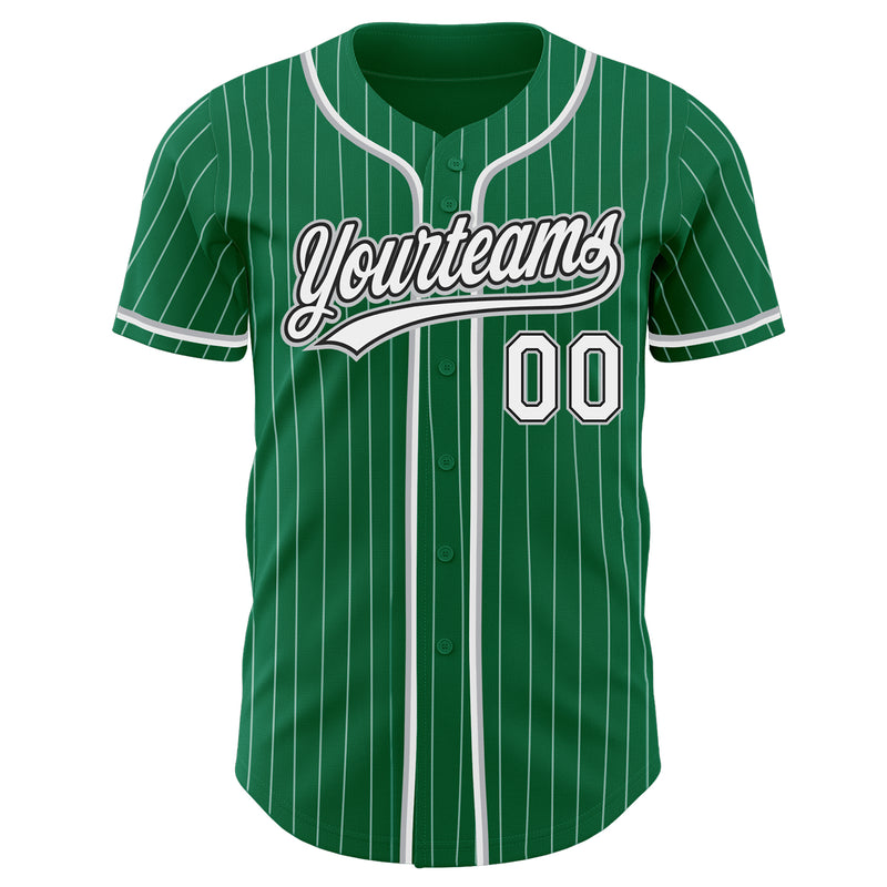 Custom Kelly Green White Pinstripe White Black-Gray Authentic Baseball Jersey