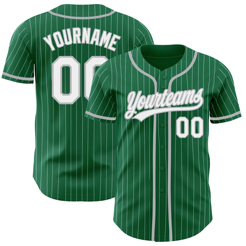 Custom Kelly Green White Pinstripe Gray Authentic Baseball Jersey