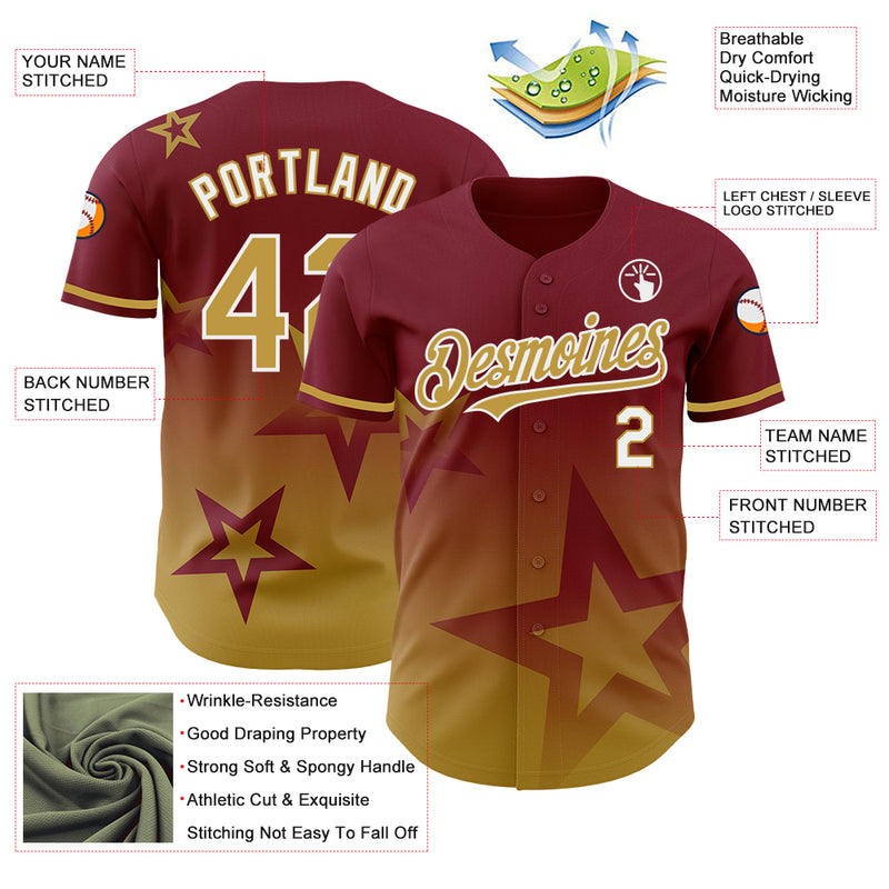 Custom Crimson Old Gold-White 3D Pattern Design Gradient Style Twinkle Star Authentic Baseball Jersey
