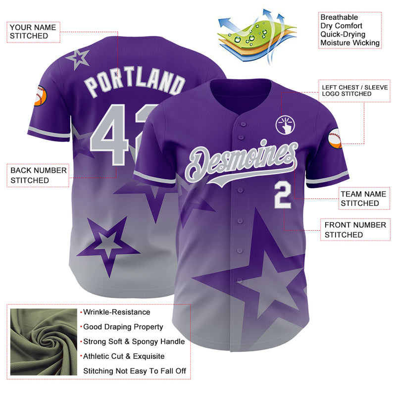 Custom Purple Gray-White 3D Pattern Design Gradient Style Twinkle Star Authentic Baseball Jersey