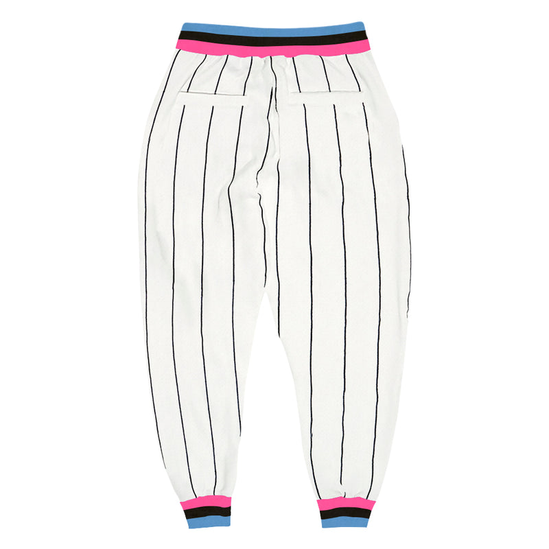 Custom White Black Pinstripe Pink-Light Blue Sports Pants