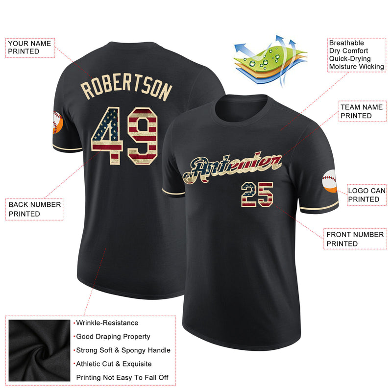 Custom Black Vintage USA Flag-Cream Performance T-Shirt