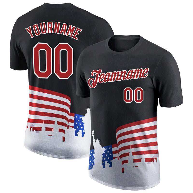 Custom Black Red-White 3D American Flag Patriotic Performance T-Shirt