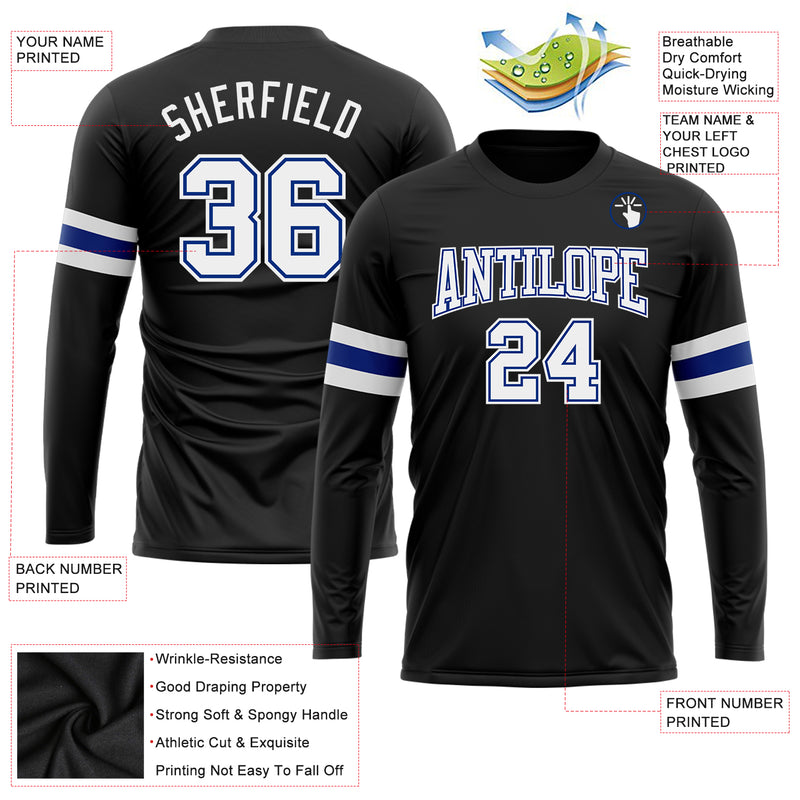 Custom Black White-Royal Long Sleeve Performance T-Shirt