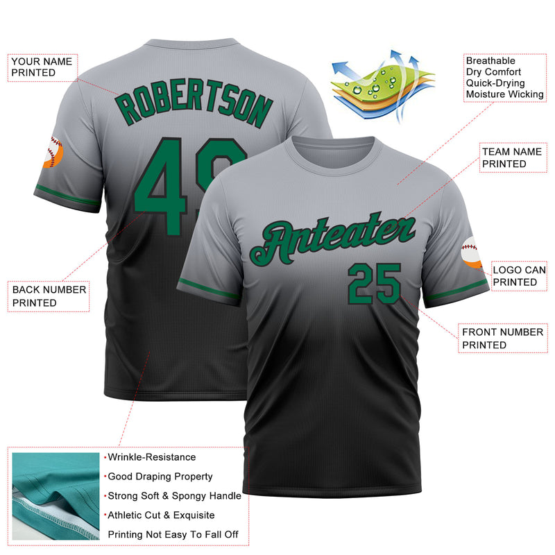 Custom Gray Kelly Green-Black Fade Fashion Performance T-Shirt